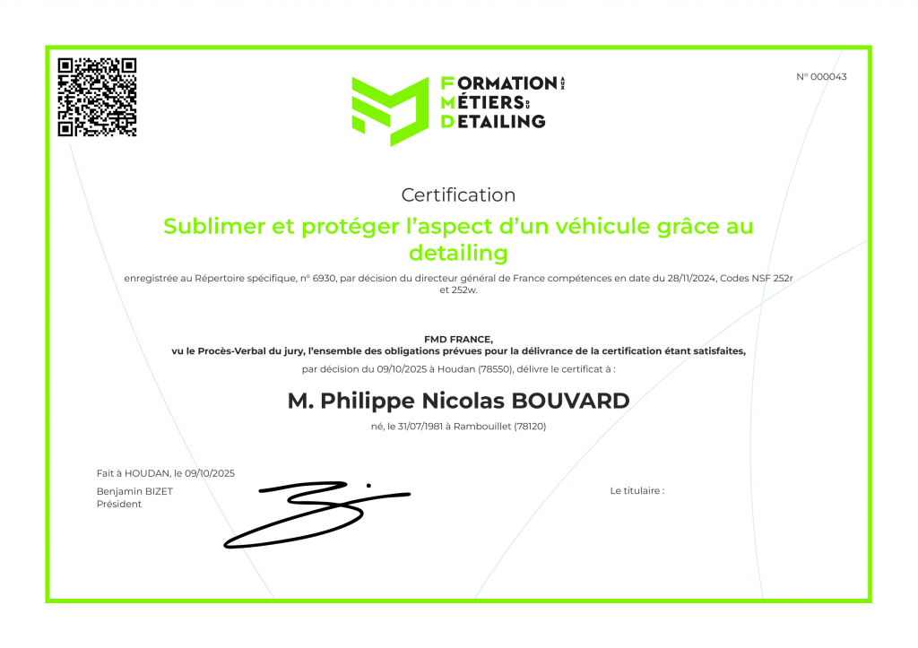 Nicolas a suivi une formation complète chez Formation Métier Detailing, l’une des meilleures académies spécialisées dans ce domaine passionnant. Grâce à l’expertise et au savoir-faire qu’il y a acquis, il met un point d’honneur à offrir un service de qualité. Vous serez accueilli et conseillé dans les meilleures conditions pour sublimer votre véhicule.